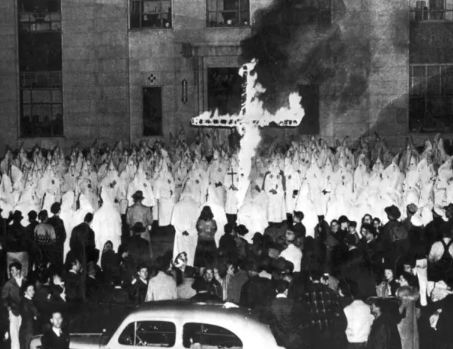 Moments before the Great Klan Inferno of 1952 when a toppling fiery cross set alight the robes of 113 initiates as they swore the oath of white supremacy. An Act of God, said some.